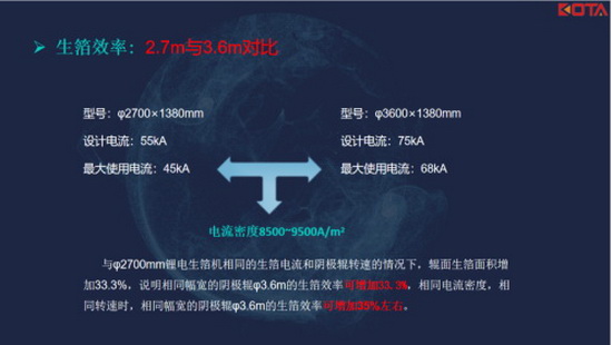 Por exemplo, de 2017 a 2019, a indústria de folhas de cobre de bateria de lítio promoveu principalmente rolos de cátodo com um diâmetro de 2,7 metros, e a indústria está atualmente desenvolvendo rolos de cátodo com um diâmetro de 3,6 metros. Na mesma densidade de corrente e na mesma velocidade, a eficiência da produção de folha de um rolo de cátodo com um diâmetro de φ3,6m e a mesma largura podem ser aumentados em cerca de 35% em comparação com um rolo de cátodo com um diâmetro de φ2,7m.