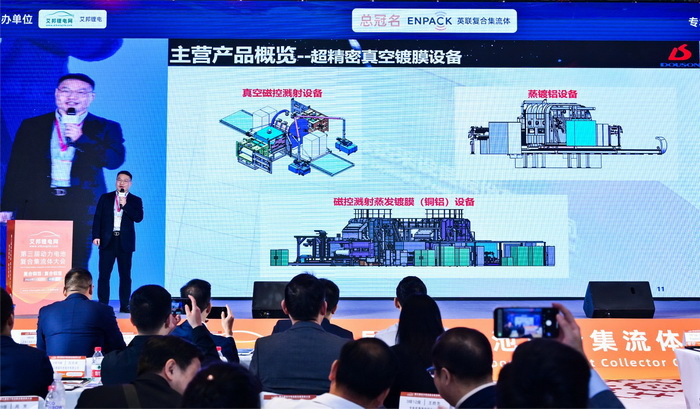 O Sr. Zhu disse: A véspera da industrialização da indústria de colecionadores atuais compostos chegou e está prosperando. A KOTA Technology está comprometida com o layout industrial e o desenvolvimento de equipamentos de alumínio de cobre sofisticados e equipamentos de revestimento a vácuo de ultra-precisão, concentrando-se em fornecer soluções gerais no campo do "método seco de uma etapa", ajudando o desenvolvimento da indústria de coletores atuais compostos e a acelerar a melhoria da permeação de corrente de coletor composta. Na reunião, o Sr. Zhu se concentrou em introduzir a solução "Método seco de uma etapa" fornecido pela tecnologia KOTA no campo do equipamento composto de cobre e alumínio de alumínio: magnetron a vácuo que pulvege a máquina all-in-one, evaporação de magnetron. A KOTA Technology formou sua própria matriz de produtos exclusiva no campo de equipamentos compostos de cobre e alumínio, que podem atender às necessidades de personalização personalizadas de diferentes clientes e fornecer aos clientes um conjunto completo de soluções para toda a fábrica. Na reunião, o lançamento do equipamento de método seco de uma etapa recebeu atenção generalizada e elogios de especialistas do setor e convidados que participaram da reunião.