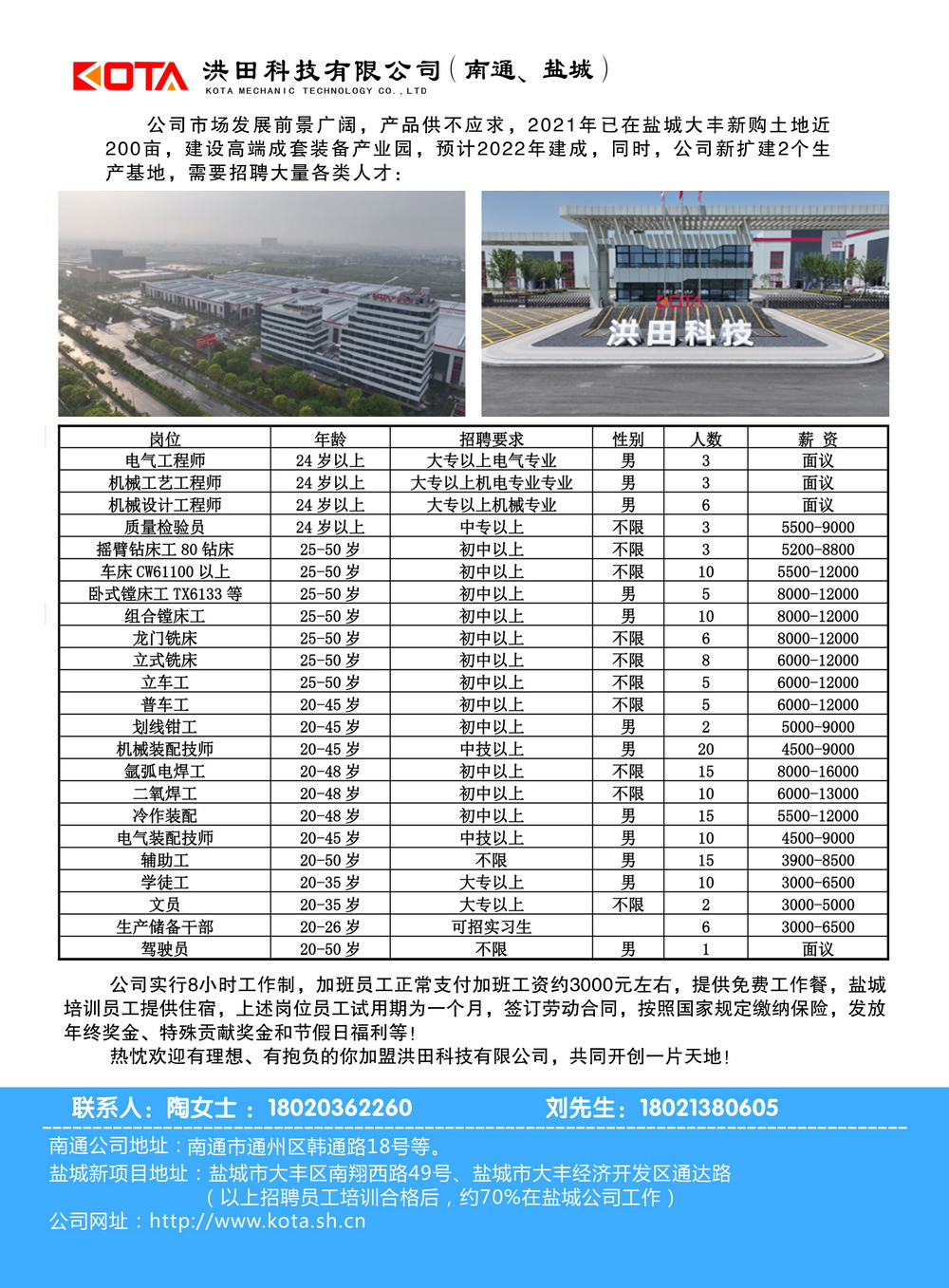 A empresa possui amplas perspectivas de desenvolvimento de mercado e seus produtos são escassos. Em 2021, comprou quase 200 acres de terra em Dafeng, Yancheng, para construir um parque industrial completo de equipamentos completos, que deve ser concluído em 2022. Ao mesmo tempo, a empresa expandiu duas novas bases de produção e precisa recrutar um grande número de talentos de vários tipos: